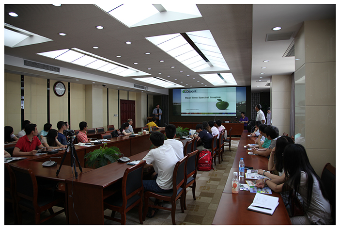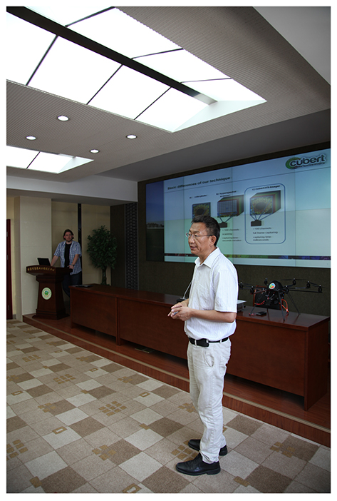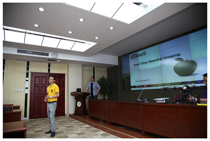 2014年6月12日中午,德中天地南京分公司總經(jīng)理邀請Cubert GmbH公司CEO Michels博士到南京農(nóng)業(yè)大學(xué)做UHD185框幅式UAVmini高光譜攝像儀技術(shù)報告會。