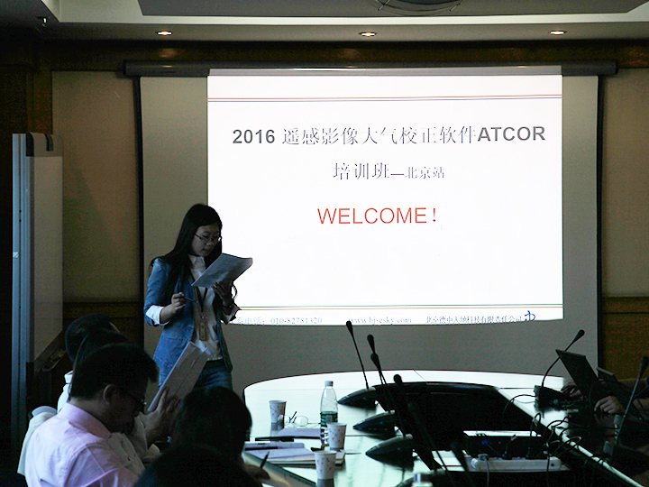 在培訓過程中,中科院對地觀測中心從事大氣校正多年的張老師與舒老師根據參會者對大氣校正的了解狀況以及ATCOR的軟件特性,分別從大氣校正基本原理、ATCOR軟件霧霾去除原理、ATCOR軟件山體陰影去除原理三大方面進行培訓。