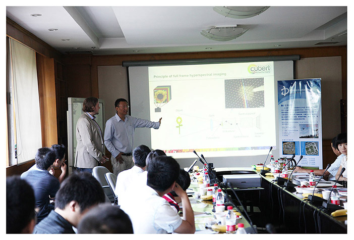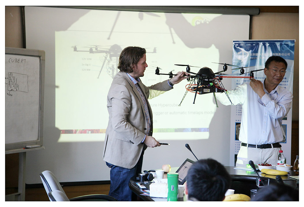 2014年6月10日上午,由北京德中天地科技有限責任公司主辦的UHD185框幅式UAVmini高光譜攝像儀技術報告會在京舉行,Cubert GmbH 公司CEO Michels博士接受張經理的邀請來到北京。