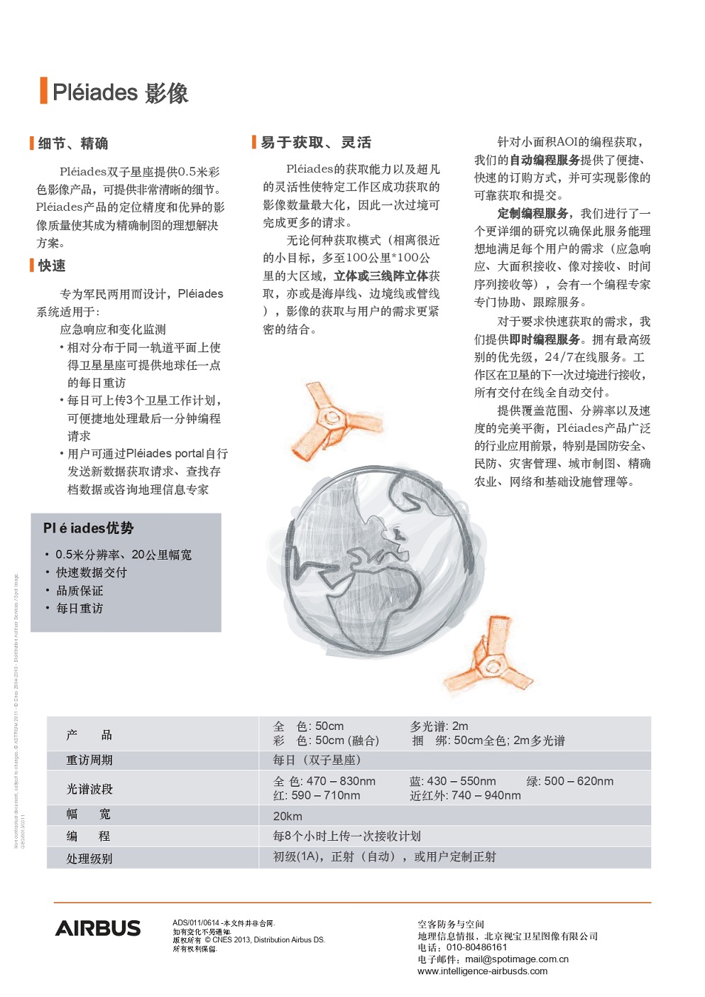 北京德中天地科技有限責(zé)任公司為法國AIRBUS公司的中國代理商。AIRBUS公司的Pleiades衛(wèi)星是法國的高分辨率商業(yè)遙感衛(wèi)星,包括Pléiades-1A和Pléiades-1B兩顆衛(wèi)星,提供0.5米分辨率的彩色影像,支持全球范圍內(nèi)的高頻次觀測,擁有多樣化的拍攝模式,為城市規(guī)劃、資源管理等領(lǐng)域提供寶貴數(shù)據(jù)。